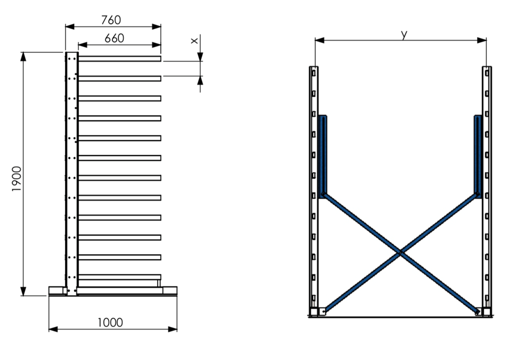 Fully adjustable rack length in scissor model designs – quick and easy to adjust.